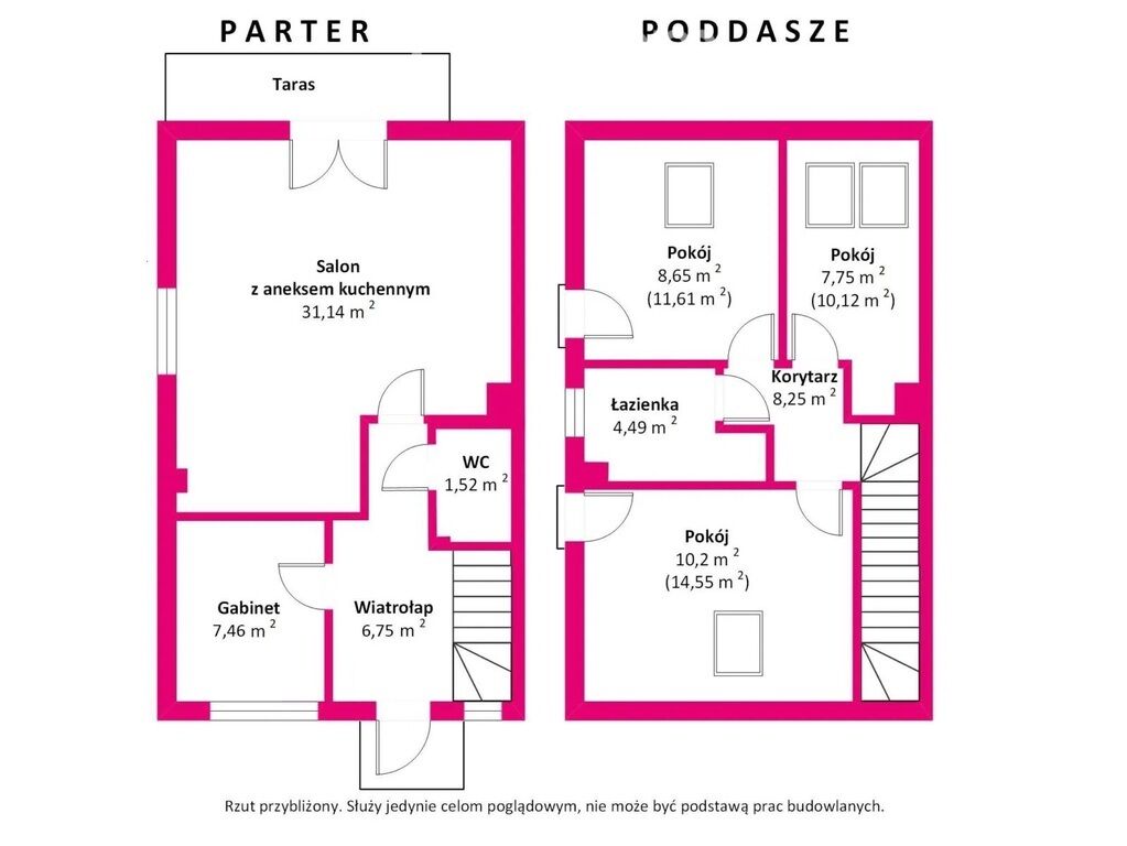Piętro (39,34 m² użytkowe, 49,02 m² powierzchni podłóg):